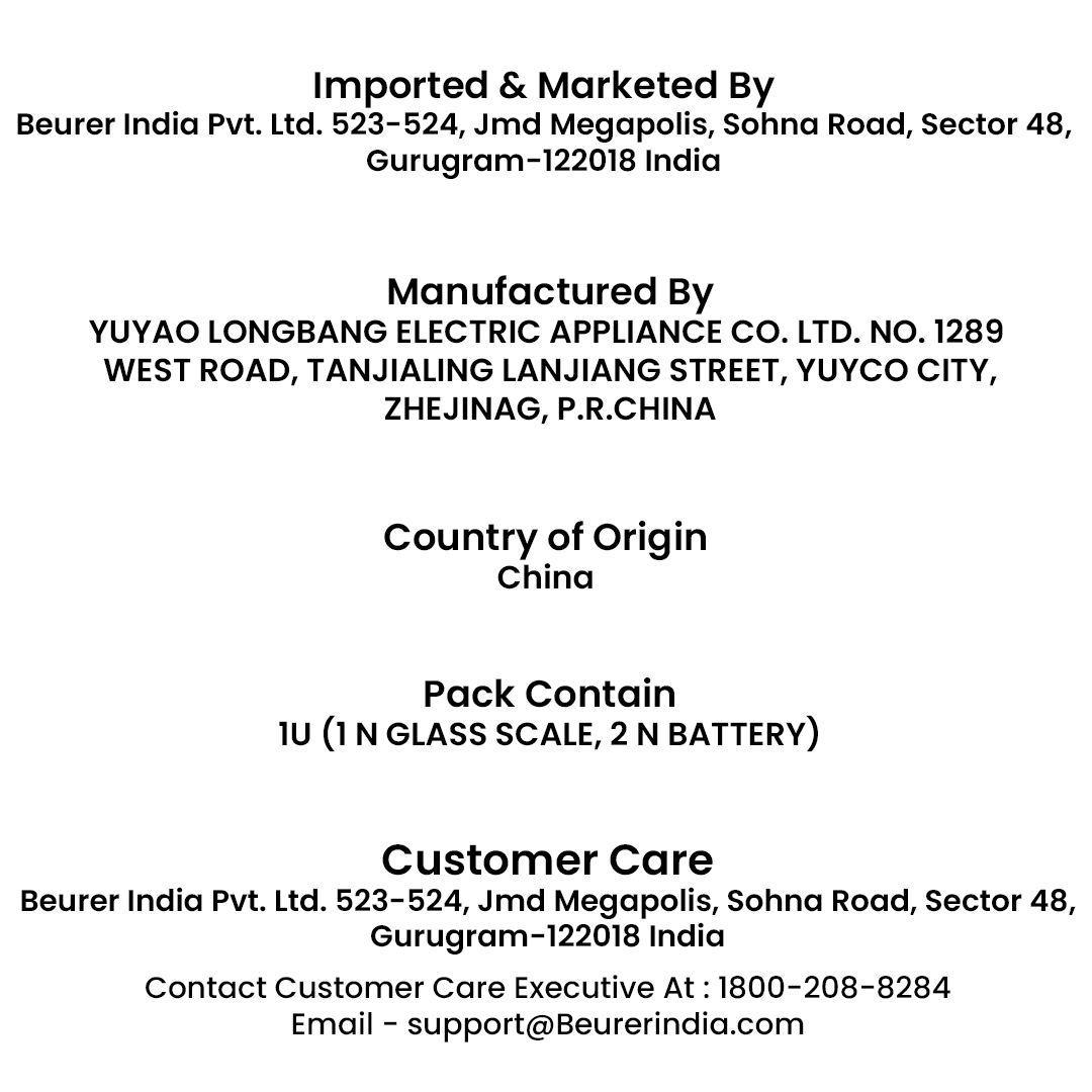 - Standing surface made from extra strong 8 mm safety glass. Change over to kg/lb/system